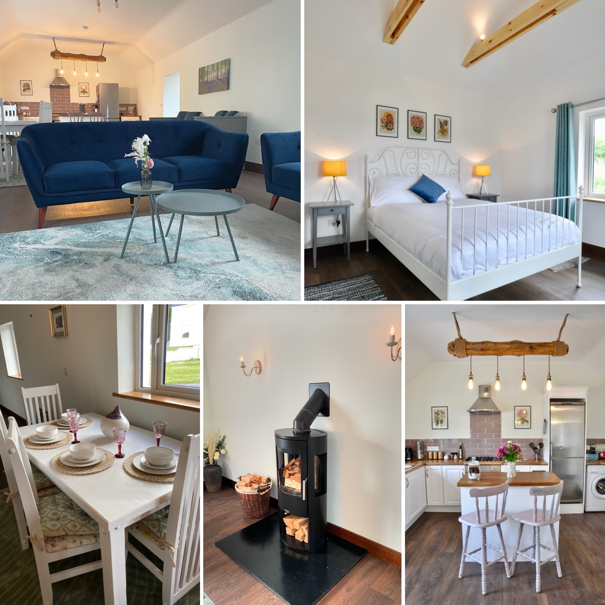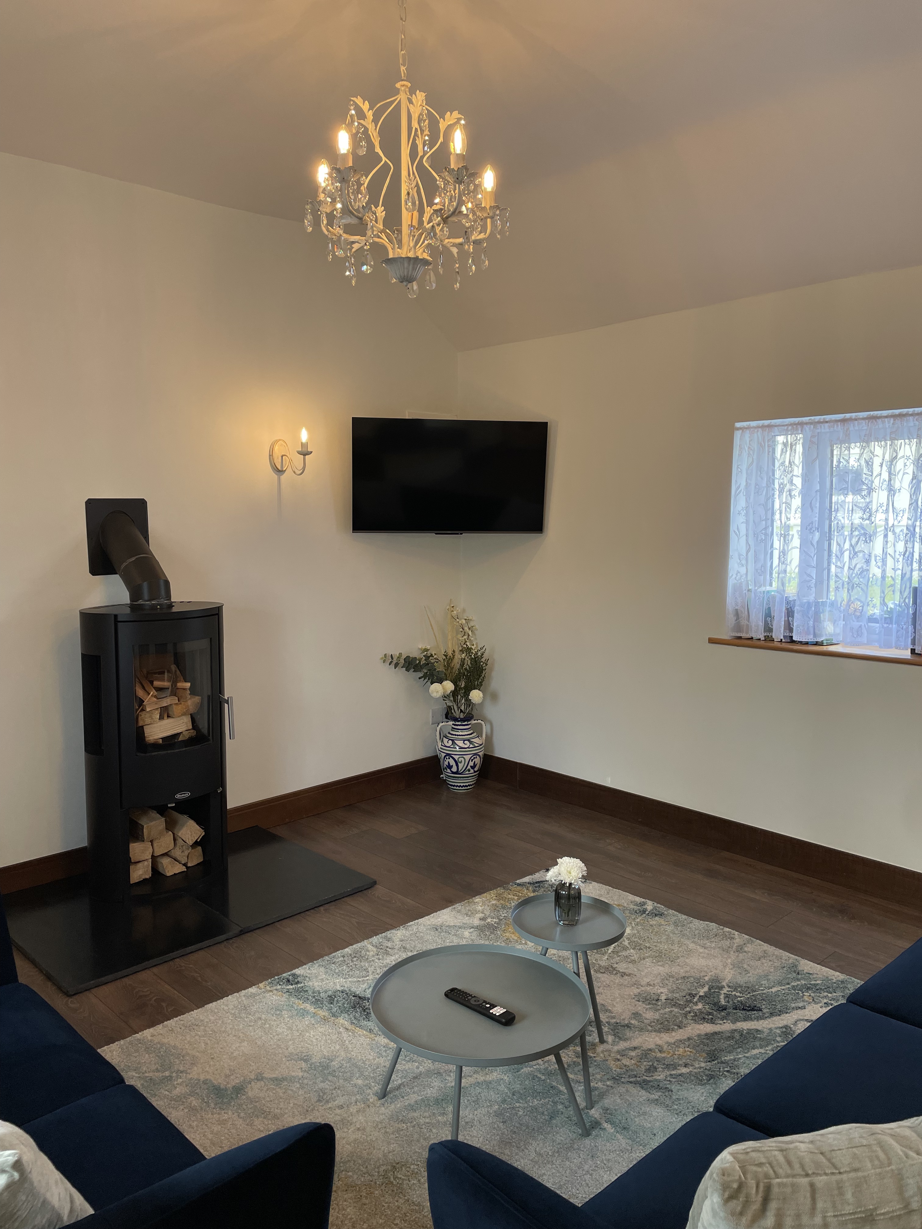 Vaulted ceilings in the open floor plan of the kitchen, dining and sitting/living room. Vaulted ceilings with beautiful beam work in the bedroom. The kitchen is fully functioning so you can cook all your own meals (full-size refrigerator, gas stove and oven, toaster, washing machine no dryer, clotheshorse only, dishwasher). Enjoy breakfast, lunch or dinner inside or outside on the patio/garden/terrace. Sit by the fire and read a book or watch some television. Enjoy a walk to Kinard beach, or venture further to Minard or Dún Síon/Doonsheane. Flat screen smart TV with Netflix & free Wifi. Electricity is included in the price.